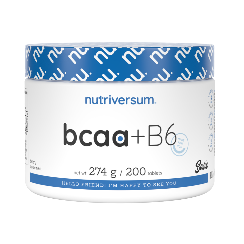 Nutriversum BCAA+B6 - аминокислоты БЦАА в капсулах с добавлением витаминов группы Б. Эта добавка разработана фармацевтами фирмы Nutriversum для защиты восстановления мышц и поддержания анаболических процессов, она способствует набору чистой мышечной массы, а так же повышает энергетические резервы организма. Помимо аминокислот продукт содержит витамины группы Б, это позволяет улучшить работу сердца, а так же поддерживает сосудистую систему в хорошем состоянии. Благодаря тому, что аминокислоты BCAA положительно воздействуют на защитные функции организма, из него быстрее выводятся продукты жизнедеятельности клеток и нормализуется метаболизм жиров.