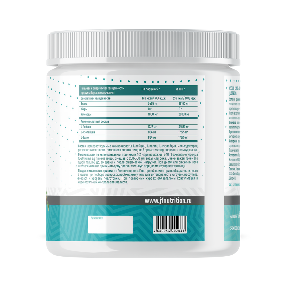 Комплекс Just BCAA 2:1:1 - полностью безопасное средство, легкое в использовании, быстро растворимое и обладающее превосходным вкусом. В каждой порции содержится до 3.5 грамм аминокислот с разветвленной цепочкой. Без сахара, глютена и аспартама.