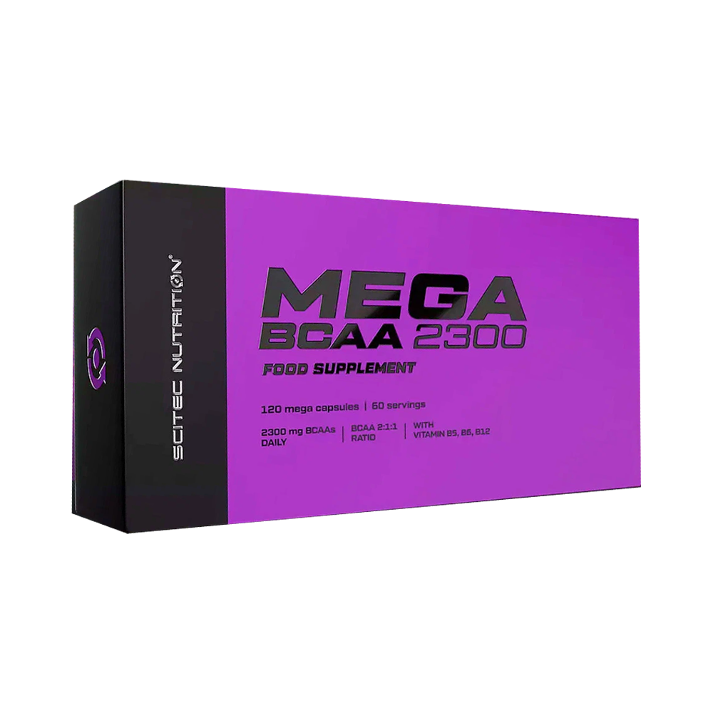 Mega BCAA 2300 содержит L-лейцин, L-изолейцин и L-валин в соотношении 2:1:1 в форме капсул. BCAA, или аминокислоты с разветвлённой цепью, относятся к так называемым незаменимым аминокислотам. Организм человека не может вырабатывать эти аминокислоты или вырабатывает их в недостаточном количестве, поэтому мы можем получать их из внешних источников, употребляя в пищу продукты, содержащие белок.