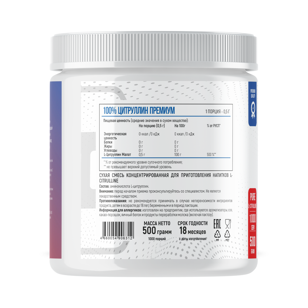 | L-Цитруллин Малат | 0,5 г | * |