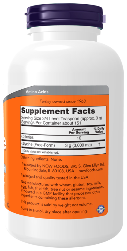 Глицин — это самая маленькая и простая аминокислота, что делает его универсальным для использования в широком спектре функций. Глицин необходим для производства глутатиона, ДНК, креатина, желчи, гемоглобина и большинства белков. Он также способствует накоплению гликогена, тем самым делая глюкозу доступной для выработки энергии.* Глицин также действует как успокаивающий нейромедиатор в головном мозге, где он облегчает передачу нервных импульсов и важен для поддержания здорового режима сна.