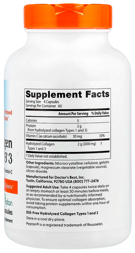 Doctor's Best Collagen Types 1 and 3 with Vitamin C, 240 капсул