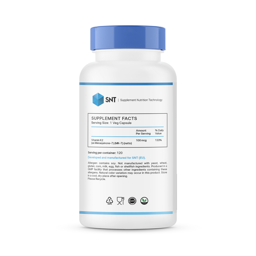Известно, что витамин К отвечает за синтез нескольких факторов свертывания крови и формирование сильных, здоровых костей. Vitamin K2 MK7 - это уникальная биодоступная форма витамина К2 без сои, которая играет ключевую роль в поддержании здоровья артерий благодаря своей способности обеспечивать правильный обмен кальция в кровеносных сосудах и артериях.